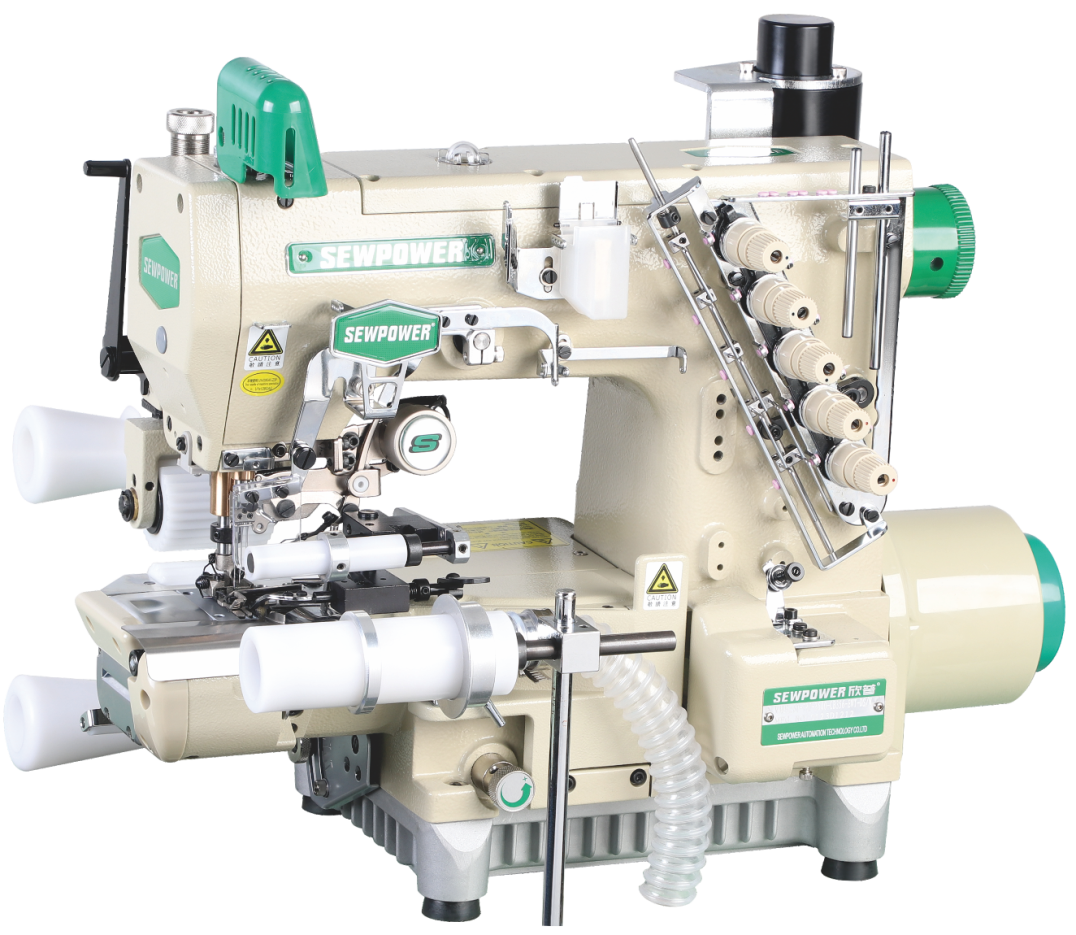 全新设计之(右切刀)切布边功能,操作容易,稳定性更佳。适用 于男女内裤裤腰之松紧带缝合,配合右切刀装置,更能提高缝制品质。